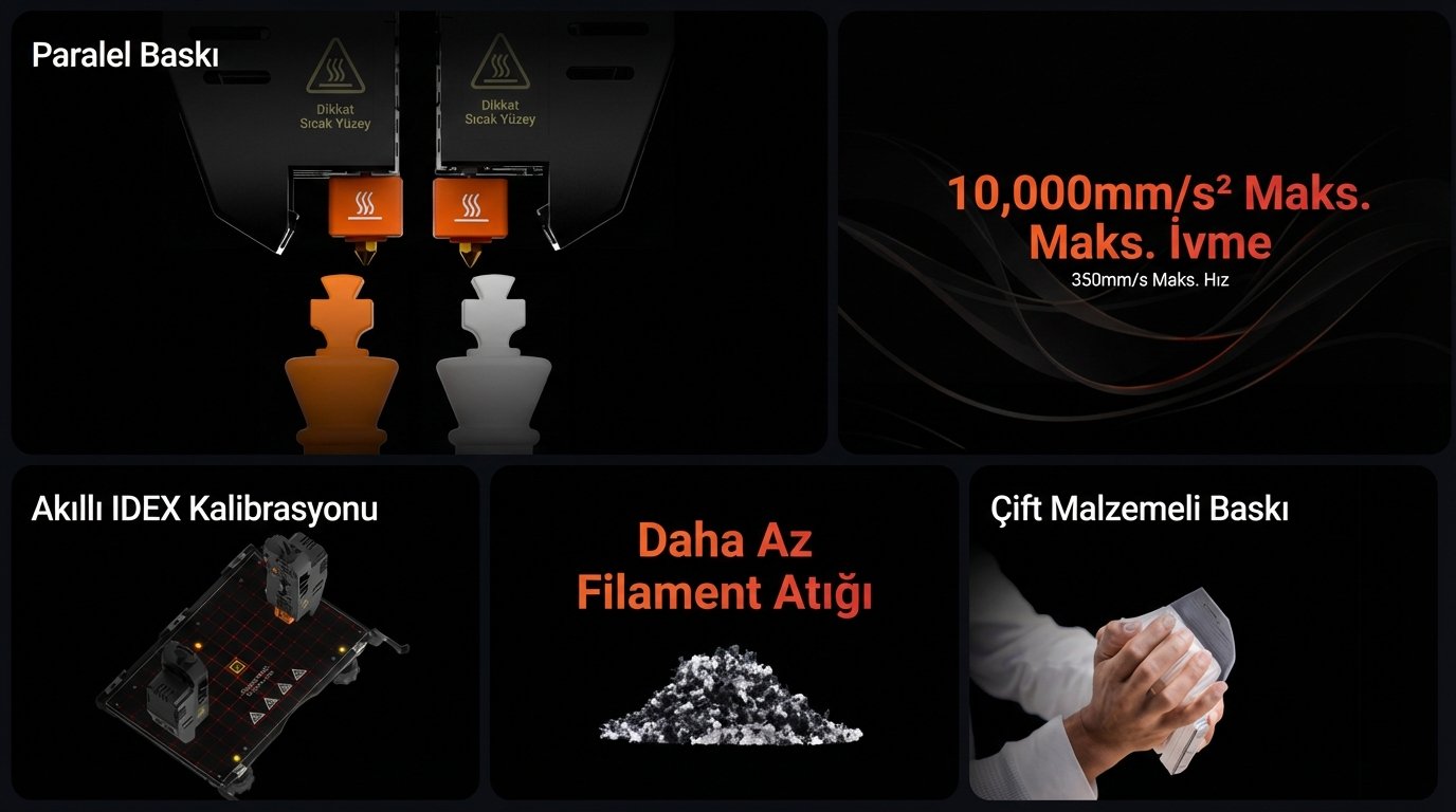 | Sistem Türü | Bağımsız Çift Ekstrüder (IDEX) |
